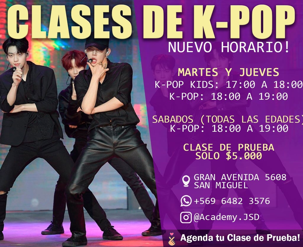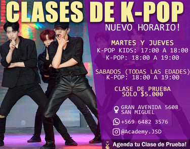Si ya cuenta con 11 Años o más puede Participar en las clases de K-POP de Martes a Sábados de 18:00 a 19:00